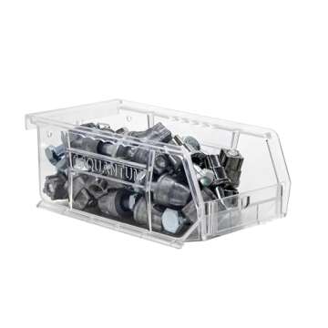 If you're looking for an efficient and versatile storage solution, the Hudson Exchange 7-1/2" x 4" x 3" Plastic Stackable Storage Bin is the answer to your organizational woes. Made from high-quality, durable plastic, this crystal clear container is designed to help you effortlessly organize small parts, home goods, or supplies for warehouse picking. Its precise outer dimensions of 7-1/2" x 4" x 3" and inner dimensions of 6-13/16" x 3-1/2" x 2-5/8" make it the ideal size for fitting into...