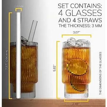 With each set, you receive four beautifully designed ribbed glasses accompanied by four stylish glass straws. This sustainable option allows you to sip your beverages with zero waste, rendering them perfect for eco-conscious lifestyle choices. The delicate ribbed design not only enhances grip but also elevates the visual appeal of your favorite drinks—whether it’s an invigorating iced coffee or a refreshing smoothie, every sip is a delight!