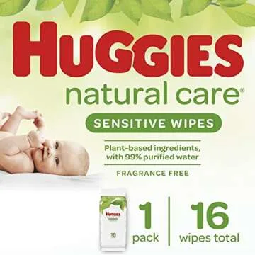 Show moreIntroducing the Huggies Bundle - 12 Pack of Natural Care Unscented Baby Travel Wipes, designed with your baby's comfort and care in mind. These wipes boast a remarkable composition of 70% plant-based fibers, ensuring a naturally soft and comfortable experience. Ideal for on-the-go parenting, the compact packaging of 16 wipes per pack makes it easy to carry in diaper bags or strollers without added bulk. Whether you're changing diapers, cleaning little faces, or handling sticky fingers, these wipes are here to tackle messes efficiently while prioritizing your baby's delicate skin.
