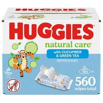 Show moreExperience the Next Level of Cleanliness with Huggies Natural Care Refreshing Baby Wipes! Transform your baby care routine with these exceptional wipes that redefine convenience and safety. Huggies Natural Care Refreshing Baby Wipes are crafted with love for your baby's delicate skin. With 10 flip-top packs containing a total of 560 wipes, you'll never run out when you need them most. Made from over 70% plant-based materials, they strike the perfect balance between effective cleaning and gentle care, ensuring your little one stays fresh and clean.