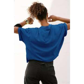 HUGOOME Boxy Crew Neck Blue Flame Crop Top - Loose Fit, Soft, Casual & Athletic (L)