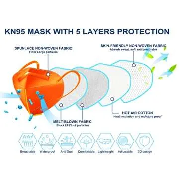 HUHETA KN95 Face Mask 60 Pack, 5-Ply Breathable & Comfortable Safety Mask, Filter Efficiency≥95%, Protective Cup Dust Masks Against PM2.5 - Individually Wrapped (Multicolored Mask)