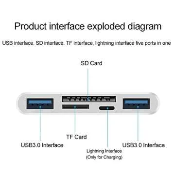 HUI 5 in 1 Lightning Type-c OTG Camera SD TF USB C Memory Card Reader Adapter for Phone/Pad/Android/Mac/Computer/Camera/MacBook, Supports SD/Micro SD/SDHC/SDXC/MMC and USB OTG