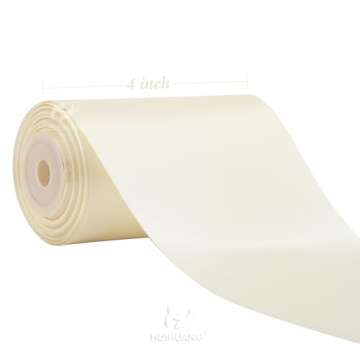HUIHUANG 4 inch Wide Satin Ribbon Ivory Ribbon Solid Color Double-Faced Satin Ribbon Thick Ribbon for Wedding Chair Sash Wedding Decor Large Bows Making Flower Bouquet Sewing Crafts -10 Yards/Roll