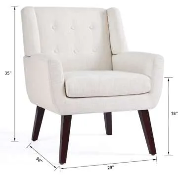 Show moreWelcome to a new realm of elegance and comfort with the HUIMO Accent Chair – a quintessential addition to your living space that merges mid-century modern design with functional comfort. Crafted meticulously for those who appreciate a cozy nook in their home, this upholstered chair not only serves as a stunning focal point in your room but also cradles you in luxurious comfort. Featuring soft linen fabric and button tufting, it provides a timeless appeal while being available in multiple colors to suit your style. Transform your reading corner or living room with this charming accent chair that offers the perfect mix of style and utility.