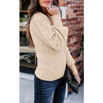 Huiyuzhi Women’s Puff Sleeve Pullover Sweater - Soft Slim Fit Knitted Jumper
