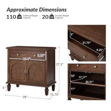 Show moreIntroducing the HULALA HOME Nightstand with Charging Station, a perfect blend of traditional design and modern functionality. This exquisite nightstand features elegantly crafted arched rattan doors, adding a timeless and stylish touch to any bedroom decor. The antique brass handles are not just functional but serve to enhance the vintage charm, making it an intriguing focal point in your living space. Additionally, the walnut finish beautifully complements various interior styles, ensuring it fits seamlessly into your home.