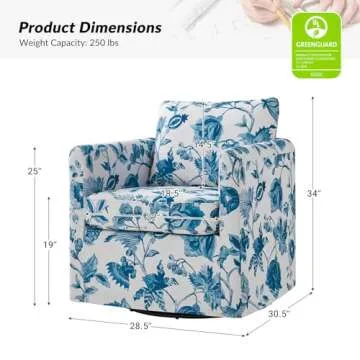 Show moreIntroducing the HULALA HOME Swivel Accent Chair, a perfect blend of style and functionality designed for modern living spaces. Upholstered in a vibrant turquoise floral fabric, this accent chair is not only visually striking, but it also offers unparalleled comfort with its soft foam-padded seat. The standout feature of this chair is its removable cover, making it easy to maintain and clean—simply unzip the cover, toss it in the washing machine, and it's fresh once again. The double-sided back and seat cushions provide flexibility, allowing you to effortlessly switch up the style to match your decor.
