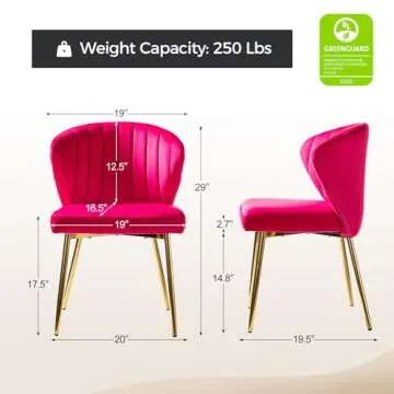 Show moreIntroducing the HULALA HOME Velvet Dining Chairs - a perfect blend of comfort, elegance, and versatility designed to enhance any space in your home. These modern small armless accent chairs are upholstered in soft, plush velvet that not only feels luxurious against the skin but also adds a pop of color to your decor with its striking Fuchsia hue. Our chairs feature a high-density sponge cushioning that guarantees hours of comfortable seating, whether you're dining, working at a desk, or simply chatting with friends.