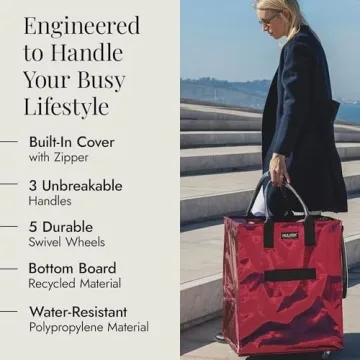 Show moreThe HULKEN Cosmic Red Reusable Grocery Bag on Wheels is your ultimate companion for tackling everyday errands and transportation challenges with ease and style. With a powerful capacity to carry up to 66 lbs, this large-sized rolling tote measures 20" x 16" x 26", making it suitable for a variety of uses—from shopping for groceries to transporting work essentials. Constructed using high-quality materials and enhanced with industrial-grade craftsmanship, this bag remains durable and reliable through your daily grind. The bold cosmic red color not only adds a touch of flair but also makes it easy to identify among your belongings.