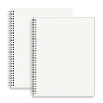 Show more Discover the perfect companion for your creative endeavors with the HULYTRAAT Large Dot Grid Spiral Notebook. Measuring a versatile 8.5" x 11", this exquisite pack of two notebooks features 64 pages each of premium 100 gsm ivory white paper. Tailored to meet the needs of artists, students, and professionals alike, these notebooks provide you with a beautifully smooth writing surface that minimizes ink bleed and ghosting, ensuring that every stroke of your pen is clear and vibrant. Whether you're jotting down notes, sketching your ideas, or bullet journaling, this notebook is designed to elevate your creativity and enhance your productivity.