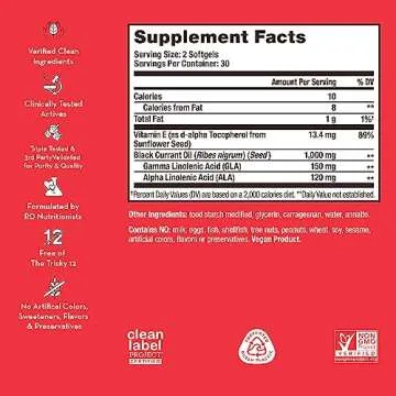 Show more Unlock the secret to a glowing, radiant appearance with this revolutionary product that combines the power of vitamin E and black currant seed oil. Known for its celebrity-level results, this skin and hair supplement nourishes from within to promote luscious locks and beautiful skin, making you feel like you’re walking the red carpet every day. Each softgel is thoughtfully crafted to deliver the richness of black currant seed oil, infused with essential fatty acids like GLA and ALA, which are crucial for skin hydration and maintaining healthy hair follicles.