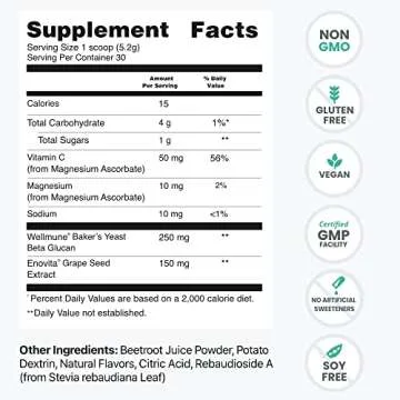 Each scoop is packed with non-GMO beet crystals, ensuring a wholesome beverage free from artificial ingredients. Perfect for those looking to support their immune health during times of stress or fluctuating seasonal conditions. Popular among users for how easily it mixes, there are no gritty residues left behind—just a smooth, delicious drink.