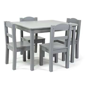 Show moreIntroduce your children to a world of creativity and organized play with the **Humble Crew Kids Furniture Set**. This delightful bundle includes a sturdy wooden table (22"W x 26"D x 19"H), four comfortable chairs (10"W x 10"D x 20"H with a 10-inch seat height and an impressive 50 lb. capacity per chair), and a large toy organizer (42"W x 16"D x 32"H) featuring 16 plastic bins. Finished in a stylish grey, this set effortlessly complements various room décors, while the toy organizer's grey frame and white bins ensures a clean and contemporary look in any playroom, bedroom, or living room.
