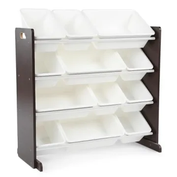 Featuring 12 removable storage bins – 8 standard and 4 large – this organizer offers unparalleled flexibility for categorizing toys, arts and crafts supplies, or books. Made from BPA and phthalate-free materials, the bins are safe for little hands and promote a fun clean-up routine. Measuring 34”W x 11”D (16”D with stabilizing braces) x 31”H, it’s the perfect fit for any playroom or bedroom without overwhelming the space. The bins are also designed for easy removal, ensuring that kids can engage with their toys independently.