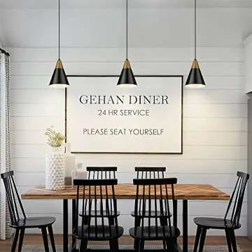 HUNEASON Pendant Lights, Modern Industrial Pendant Lighting Adjustable Height, Mid Century Modern Wooded and Metal Hanging Lamp for Kitchen Island Bar Dining Room Bedroom, Black