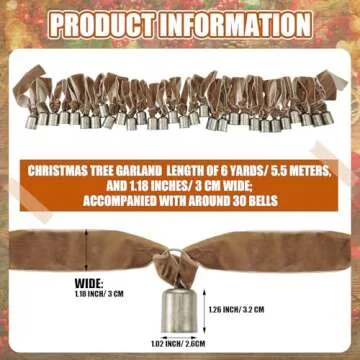 Hungdao 6 Yards Brown Velvet Christmas Tree Ribbon Garland with Rusty Jingle Bell Neutral Rustic Christmas Bell Garland Cozy Decorative for Xmas Tree Fireplace Holiday Wedding Mantle Indoor Decor