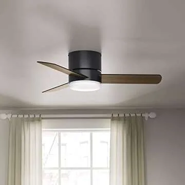 Enhance your indoor space with the stylish and functional Hunter 59453 Minimus Ceiling Fan, designed specifically to cater to small and moderate rooms. Measuring 44 inches and finished in a sleek matte black, this low profile ceiling fan not only provides a powerful breeze but also brightens your area with energy-efficient LED lighting. Thanks to its streamlined design, it seamlessly integrates into rooms with low ceilings, fostering an inviting atmosphere without compromising on style or...