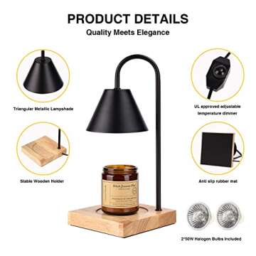Hunter tribe Candle Warmer Lamp for Jar Candles Dimmable Electric Candle Top Warmer Melting Lamp Black