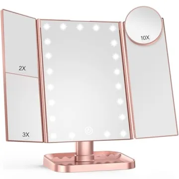 This versatile mirror boasts multiple magnification modes—10X, 3X, and 2X—ensuring that you can see every detail of your face clearly. The three-panel design offers a wide-angle view that is essential for meticulous makeup application, whether you’re at your desk or on the go.