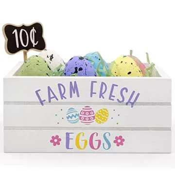 Show moreIntroducing the **Huray Rayho Easter Mini Wood Crate Set**, the perfect addition to your springtime decor! This delightful set features a rustic wooden crate, beautifully designed with a vintage "Farm Fresh Eggs" sign, and a collection of vibrant, speckled Easter eggs. Crafted from high-quality wood and lightweight foam, this set combines durability with charm, making it not only a stylish decoration but also a versatile centerpiece for your home. The vivid spring colors of blue, yellow, purple, green, and white will brighten any space, adding a festive touch to your Easter celebrations and beyond.