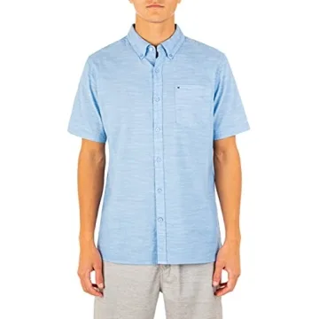 Hurley Men's One and Only Textured Short Sleeve Button Up, blue ox, XL