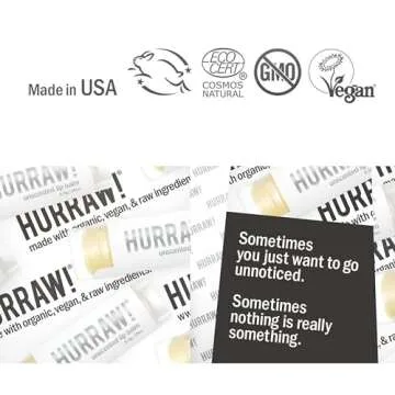 Show more Discover the luxurious experience of hydration with HURRAW! Unscented Lip Balm, carefully crafted to provide exceptional care for your lips and beyond. Encased in a sleek 4.8g/.17oz oval tube, this lip balm is perfect for those seeking a truly natural solution. Made from certified organic, vegan, and raw ingredients, you can trust that this balm is as pure as it gets. Our unique formula includes meadowfoam seed oil, known for its incredible moisturizing properties, ensuring your lips remain soft and nourished all day long.