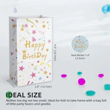 Show moreIntroducing the HURSROOR Happy Birthday Party Favor Bags – the ultimate choice for making your child's celebration even more memorable! Tailored specifically for birthdays, these delightful goodie bags are designed with care to provide the perfect blend of style and functionality. Measuring at a convenient 9.3 x 5 x 3 inches, they are the ideal size for children to carry home their treasured party favors without the hassle of oversized bags. With a total of 24 bags included, you'll have enough for all your little guests, making them an essential addition for any cheerful birthday bash.