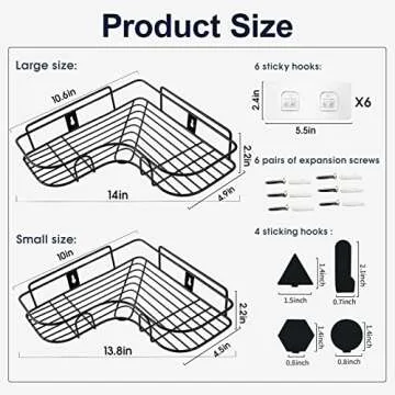 Huryfox Corner Shower Caddy Bathroom Organizer Shower Shelf with Hooks, Adhesive Shower Shelves, Wall Mounted Shampoo Holder, 2 Pack Shower Racks for Inside Shower, Black
