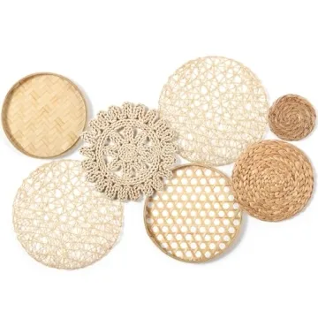 Show moreTransform your living space into a vibrant and inviting atmosphere with the Hushee 7 Pcs Wall Basket Decor. This set of beautifully handcrafted wall baskets boasts a perfect fusion of modern design and natural materials, delivering not only style but also function. Made from high-quality seagrass, rattan, and bamboo, these flat round baskets are meticulously woven by skilled artisans, ensuring durability and a unique artisanal charm. Whether your style leans towards modern simplicity or eclectic Bohemian flair, these baskets are versatile decor elements that will beautifully adorn any wall.