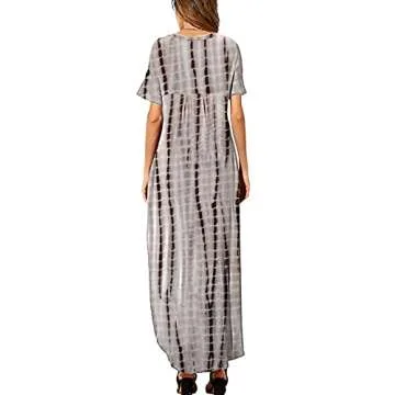 HUSKARY Women's Summer Tie Dye Maxi Dresses Casual Short Sleeve Long Split Dress -Tie Dye Brown