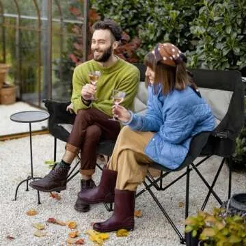 Huskfirm 2 Person Camping Chair Oversized Loveseat Camping Chair Double Camping Chairs for Adults Heavy Duty Camping Couch Black Outdoor Folding Chair Portable Patio Lawn Chair