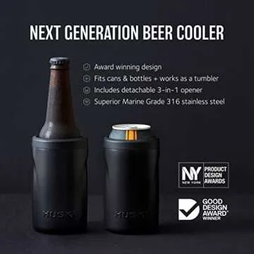 Huski Beer Cooler 2.0 | NEW | Premium Can and Bottle Holder | Triple Insulated Marine Grade Stainless Steel | Detachable 3-in-1 Opener | Works as a Tumbler | Best Gifts for Beer Lovers (Powder Pink)