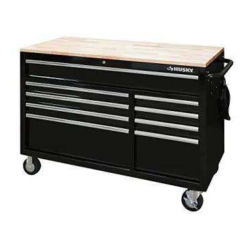Show moreIntroducing the Husky 52 in. x 24.5 in. D 9-Drawer Mobile Workbench with Adjustable Height Solid Wood Top in Matte Black, your ultimate companion in transforming any workshop into a powerhouse of creativity and productivity. Crafted with high-quality materials, this robust mobile workbench exudes sophistication while boasting a matte black finish that promises durability and longevity. Ideal for both DIY enthusiasts and professional tradespeople, this workbench is designed to elevate your workspace with a seamless blend of functionality and style.