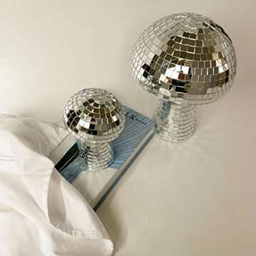 Husmued Mushroom Disco Ball for Party, Room, Table Decor - Mirror Disco Ball Mushroom Shape Home Art Decorations (Medium+Large)