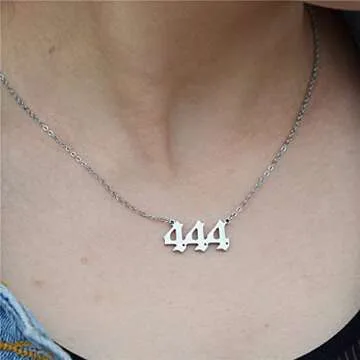 HUTINICE Angel Number Necklace, 444 Necklace Silver Dainty Choker Lucky Numbers Pendant Numerology Minimalist Women Jewelry