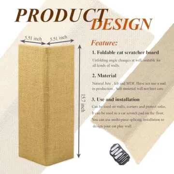 Show more Introducing the ultimate solution for preserving your furniture while giving your feline friend the scratching freedom they crave! This durable Cat Furniture Protector is meticulously designed to blend in with your home décor while serving as an irresistible play area for your kitty. Measuring 11.02×15.75 inches, it provides ample space for kittens and large cats alike, ensuring that all felines can find their new favorite spot. Made from 100% natural fabric and board, this protector emphasizes cat safety with its non-toxic, durable materials, all while offering a pure plant smell that cat parents will appreciate.