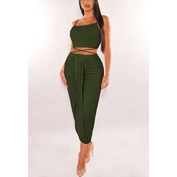 HUUSA Women's Summer Club Slit Maxi Skirt Set Fashion Nova Dresses Sleeveless Crewneck High Waist 2 Piece Long Dress Set with Slit Olive S