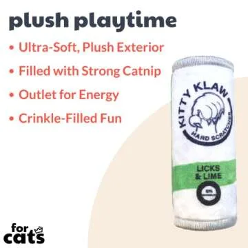 Huxley & Kent Plush Cat Toy | Kitty Klaw Licks & Lime | Nappy Hour Strong Catnip Filled Cat Toy | Plush Interactive Kitten and Cat Toy with Catnip and Crinkle | Kittybelles