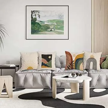 HUYAW Boho Throw Pillow Covers,Boho Pillow Cover,Boho Pillow Covers 18x18,Boho Sun Sunset Sunrise Rainbow Mountain Throw Pillows Covers, Boho Throw Pillow Cover for Bed Couch Room Sofa Decor Set of 4