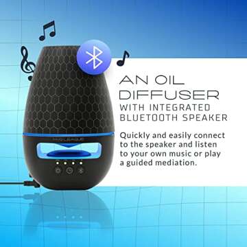 HVQ League Essential Oil Diffuser with Bluetooth Speaker, incl. 2X 5ml Bottles of Lavender & Eucalyptus Aromatherapy Oils, Quiet Diffusers for Meditation, Stress Relief & Well-Being (Black Honeycomb)