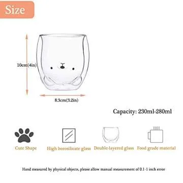 Show moreIntroducing the HwaGui Cute Cup Double Wall Glass Mug, where practicality meets playfulness! This charming bear-themed glass cup is a delightful way to enjoy your favorite beverages. Made from high-quality, heat-resistant glass, you can fill it with hot tea or coffee without worrying about cracks. Its innovative double-wall design not only keeps your drinks warm but protects your fingers from heat, making it perfect for sipping hot beverages anytime you please. The transparency allows you to watch the adorable bear show through while you enjoy your drinks, turning every sip into an experience of happiness.