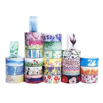 Show moreUnlock your creativity with the Hwook 48 Rolls Washi Tape Set, an artistic treasure trove for planners, scrapbookers, and DIY enthusiasts! This exceptional collection features 48 unique designs that reflect Japanese style, ensuring you have a diverse and captivating assortment at your fingertips. Each roll, measuring 4m in length and 15mm in width, offers vibrant colors and delightful patterns that seamlessly enhance any craft project. Whether embellishing journals, wrapping gifts, or personalizing everyday objects, this washi tape set empowers you to express your imagination fully.