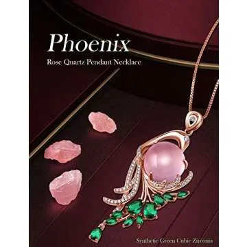 Show moreIntroducing the HXZZ Fine Jewelry Natural Gemstone Rose Quartz Sterling Silver Pendant Necklace, the epitome of elegance and charm. This exquisite piece showcases an elaborate design, harmoniously blending natural pink rose quartz with vibrant synthetic green crystals and shimmering small cubic zirconias. The delicate craftsmanship symbolizes the beauty of a phoenix, making this necklace not just a piece of jewelry, but a statement of transformation and grace. Crafted from high-quality 925 Sterling Silver and elegantly plated with rose gold, this necklace guarantees durability while maintaining its lustrous finish. The chain's length of 18+2 inches ensures a perfect fit, providing a chic feel that complements any attire, from casual to formal.