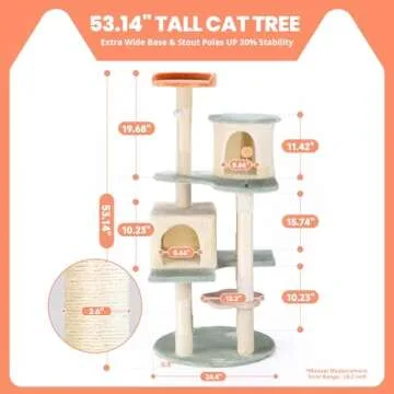 HYABi 53 inch Flower Cat Tree Tower Condo Multi-Level Furniture Apartment Plush Habitat Kitten Amusement Platform with Scratch Posts Toy Ball Pet House Play for Indoor Cats