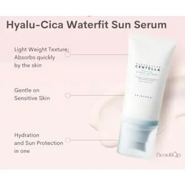 Hyalu CICA Water-fit Sun Serum 50 ML – Lightweight, Hydrating Serum with Protection, Soothing for Sensitive Skin, Moisturizing & Non-Greasy andGeoMetal™ Gauze Pad