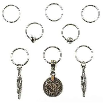 Show moreIntroducing the **Hyamass 40pcs Antique Silver Ring Feather Coin Bead Charms**, a captivating collection of hair accessories perfect for those who love to add a touch of elegance and personality to their hairstyles. This beautifully curated set includes **40 pieces** of vintage-inspired charms, featuring a variety of designs that seamlessly embellish your braids or clips. Each pendant, ranging from **17mm to 47mm** in length, is crafted with intricate details in stunning antique silver, ensuring that your look stands out at any occasion. With an outer diameter of **16mm** for each ring, these charms are perfectly sized for easy application while providing a secure hold for all your hairstyling needs.
