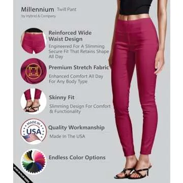 Hybrid & Company Super Comfy Stretch with Full Elastic Waist Pull On Hot Pink Millennium Twill Pant KP44972 Fuchsia L