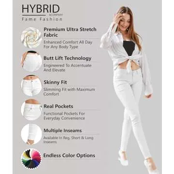 Hybrid & Company Women's Butt Lift Stretch Denim Jeans P37378SK White 7