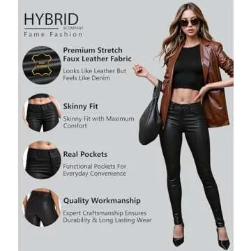 Hybrid & Company Womens Skinny Stretch Fashion Casual Faux Leather Pants P44799SK Black 5